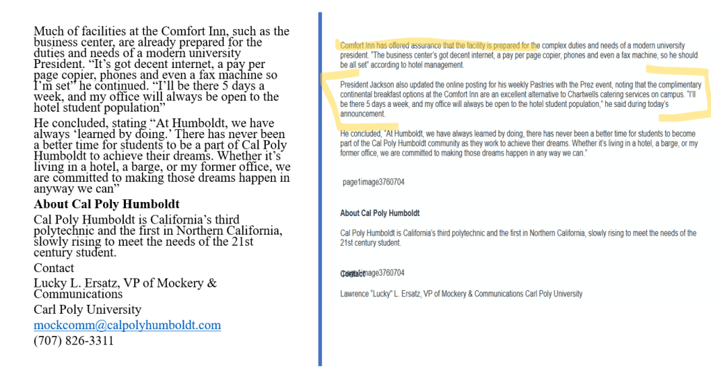 The third paragraph here is the most important: it connects to very recent news about the campus, while highlighting the original author’s joke about the possible barge housing.